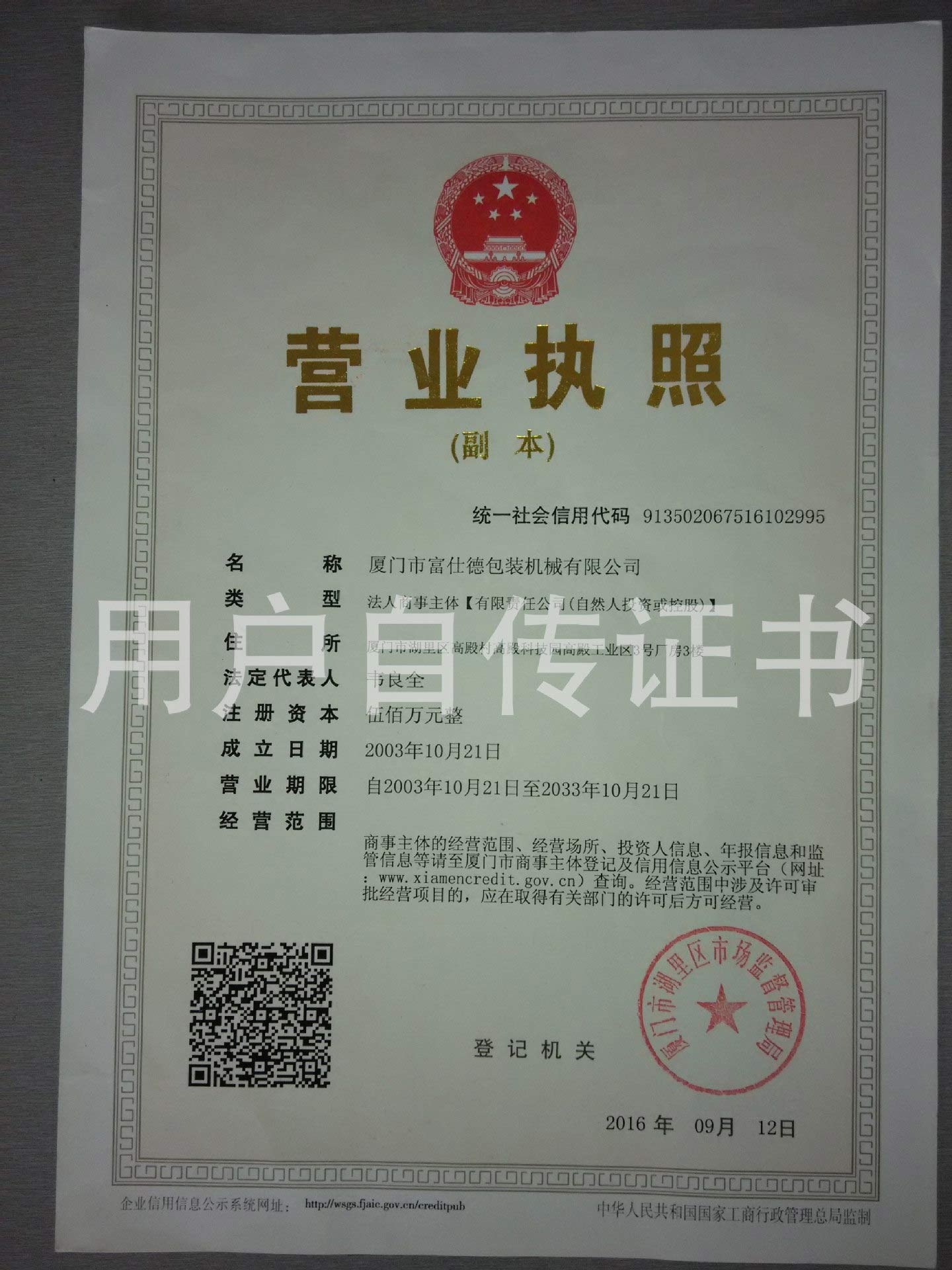 Supervisor of the Guangxi Chamber of Commerce in Xiamen -